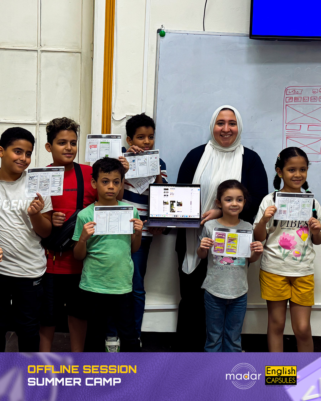 انتقلوا بعد ذلك إلى عالم البرمجة عبر برنامج Scratch، حيث تعلموا كيفية صناعة لعبة بسيطة بلمساتهم الخاصة، مما عزز قدرتهم على التفكير المنطقي والإبداعي. وفي جلسة UI/UX، صمم الأطفال Wireframe للمنصة التعليمية، ثم طوروا واجهة المستخدم (UI) بشكل مبسط يحاكي خطوات بناء المنتجات الرقمية الحقيقية.
